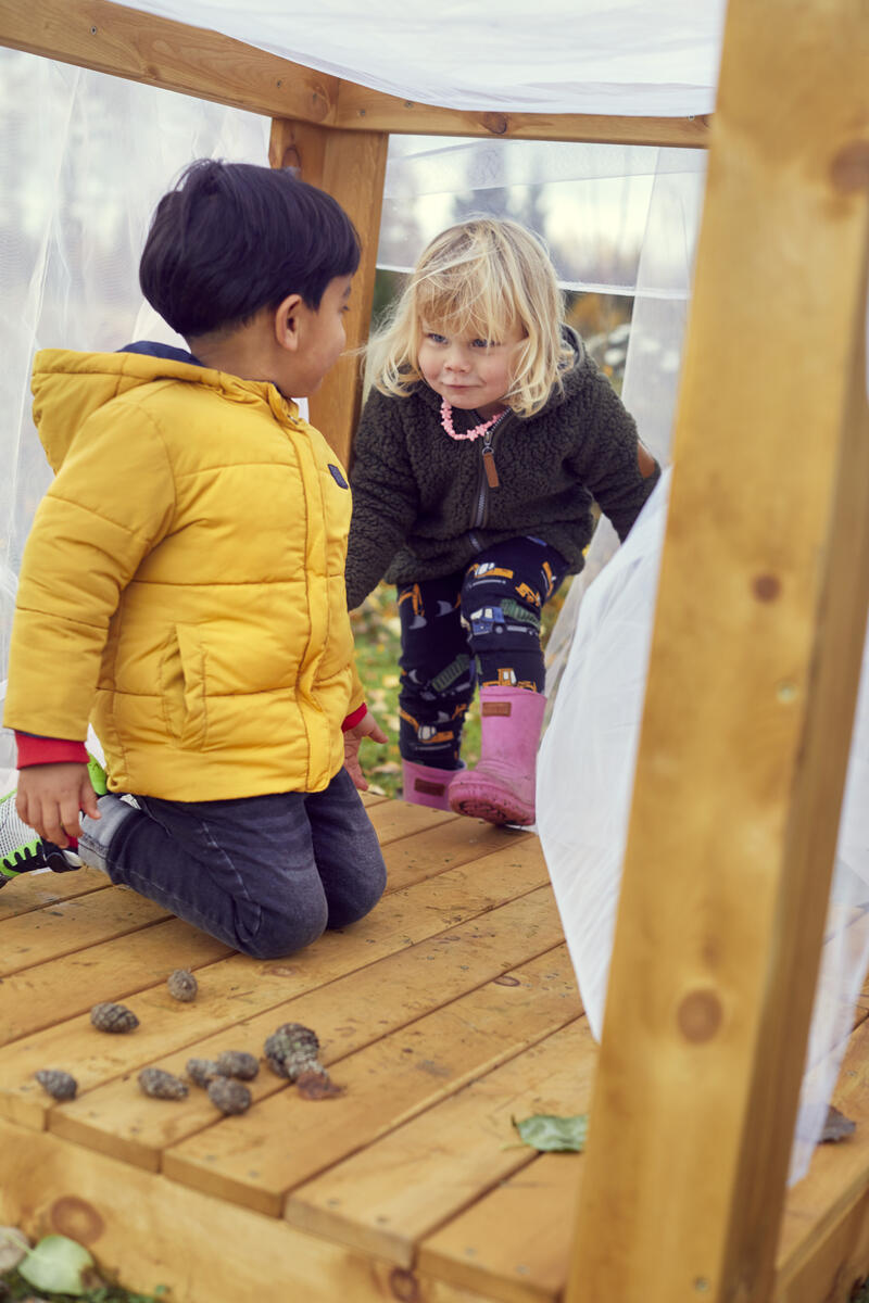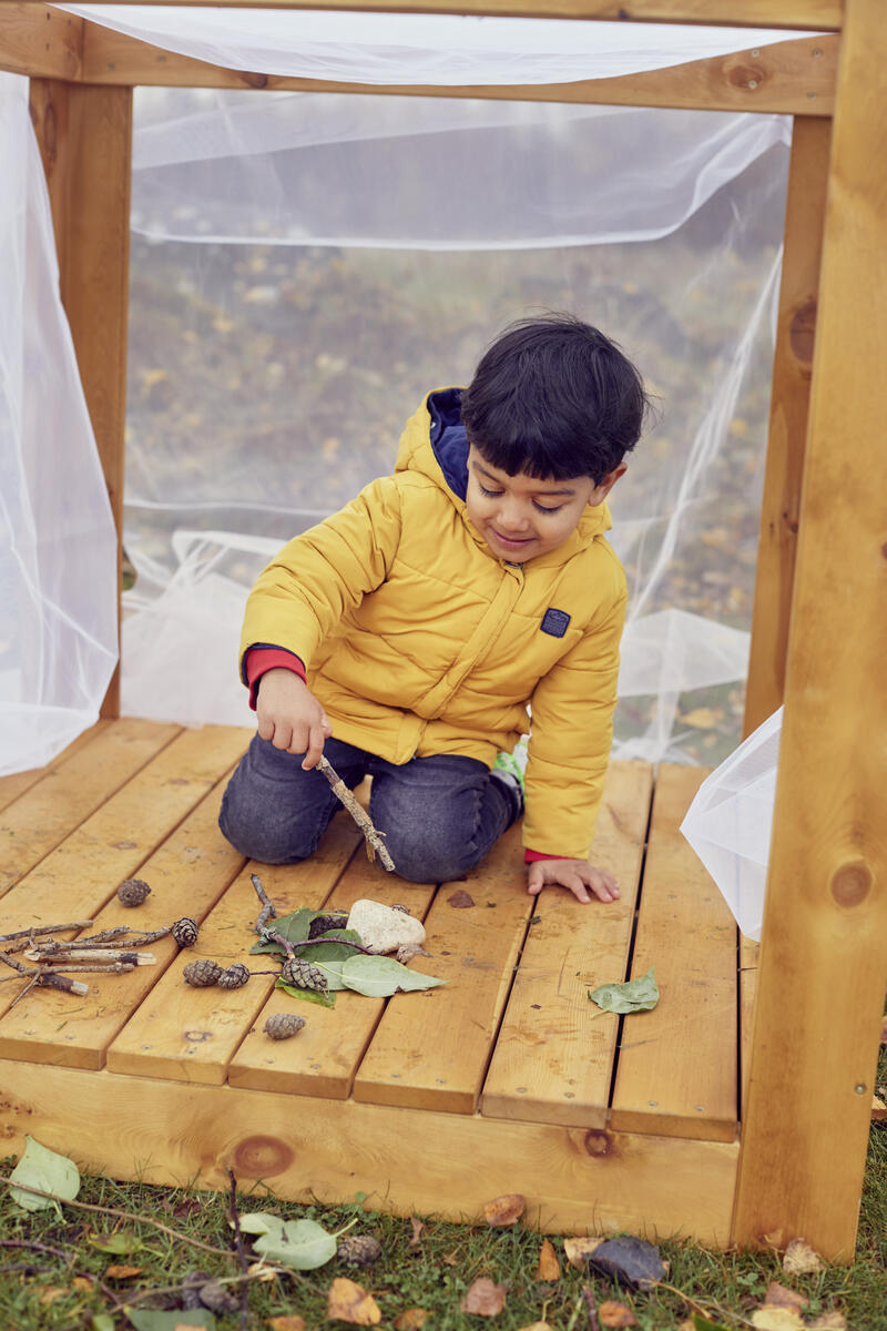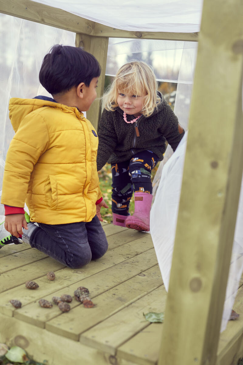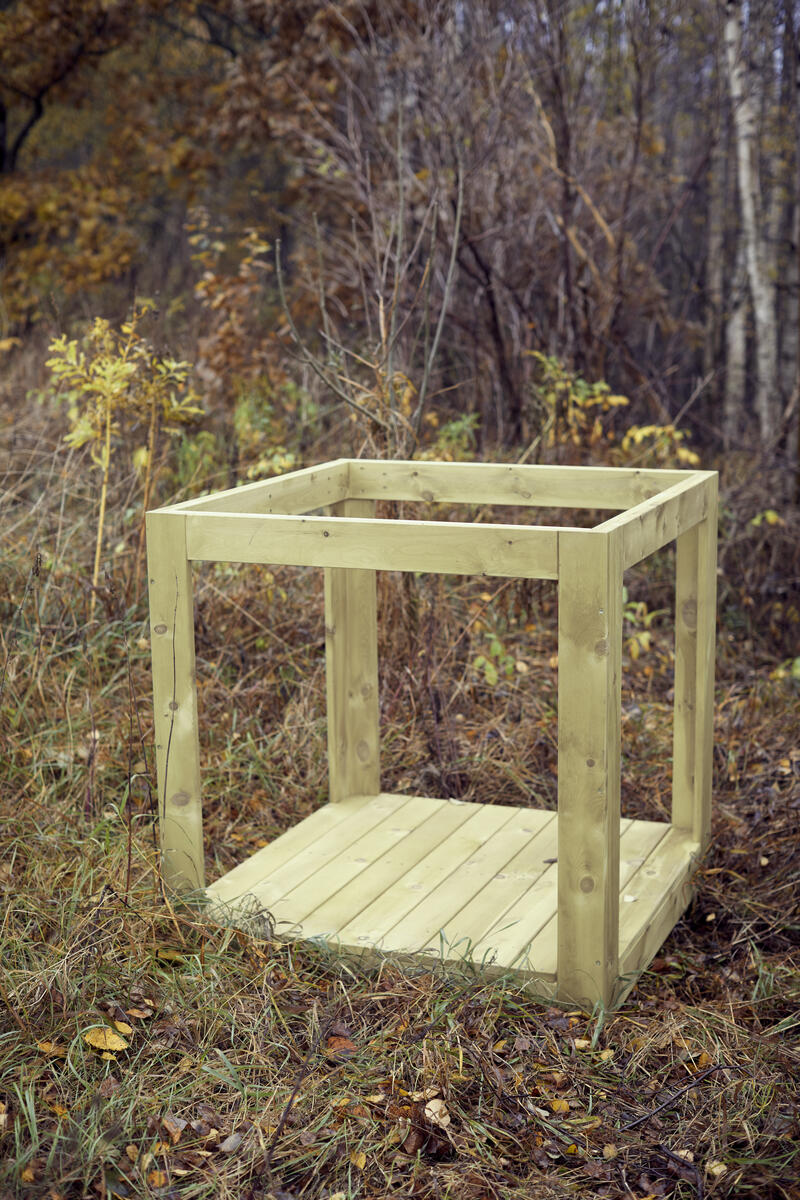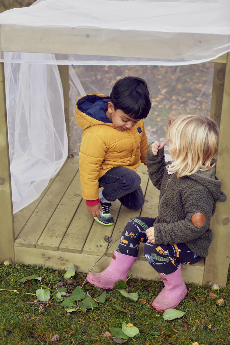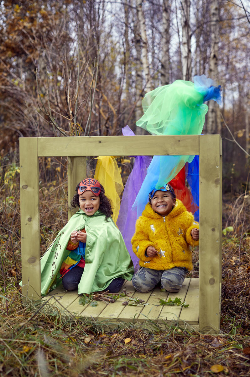 Tämä kuutiomoduuli on avoin mielikuvitukselle. Peitto muuttaa sen pieneksi taloksi, useampi kuutio yhdessä muodostaa rivitalon. Yhdistettynä sarjan muihin moduuleihin se voi olla kaikkea kuorma-auton lavasta piilopaikkaan tai jännittäväksi aistipaikaksi pihaympäristöön. Mukana ratkaisu maahan kiinnittämiseen, mikä tekee rakenteesta tukevan ja turvallisen ulkokäyttöön. Valmistettu kestävästä puusta, joka sopii päiväkotien ja koulujen arkeen. Öljytty versio säilyttää puun luonnollisen, käsittelemättömän ilmeen. Värin ja sävyn vaihtelut ovat puulle ominaisia ja vaihtelevat puun iän ja rakenteen mukaan. Öljytyn pinnan huoltoon suositellaan tarvittaessa vesiohenteista puuöljyä. Asiakas vastaa asennuksesta. Toimitusmaksu 100 €/tilaus.