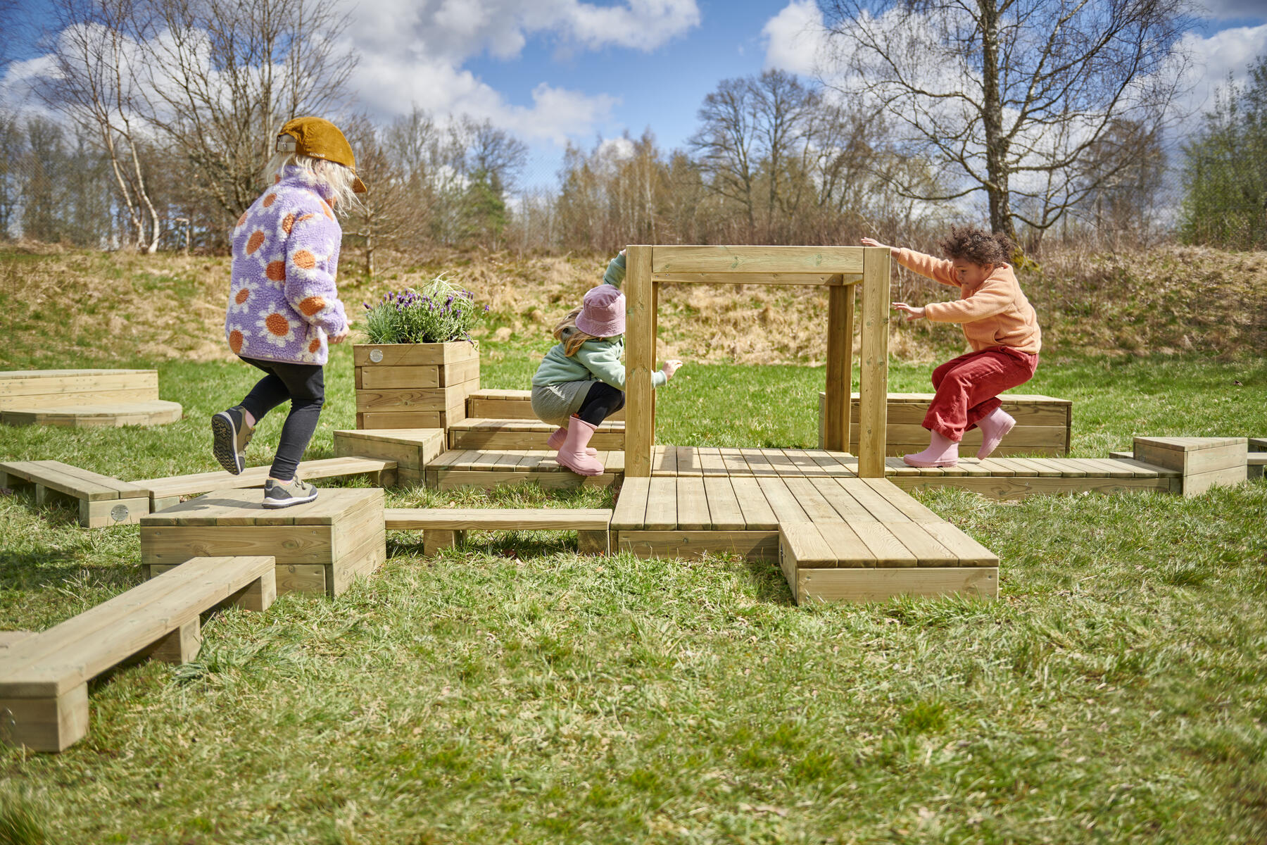 Joustavat tasapainolaudat, jotka inspiroivat liikkumaan ja mahdollistavat muunneltavan ulkoympäristön luomisen. Lapset voivat rakentaa omia tasapainoratoja ja muokata ympäristöä itse tai tehdä yhteistyötä ja rakentaa ryhmässä. Yhdessä lavastusmoduulien kanssa ne voivat muodostaa vaihtelevaa topografiaa ja vaikeusastetta. Toimitetaan valmiiksi koottuna. Asiakas vastaa asennuksesta. Toimitusmaksu 100 €/tilaus.