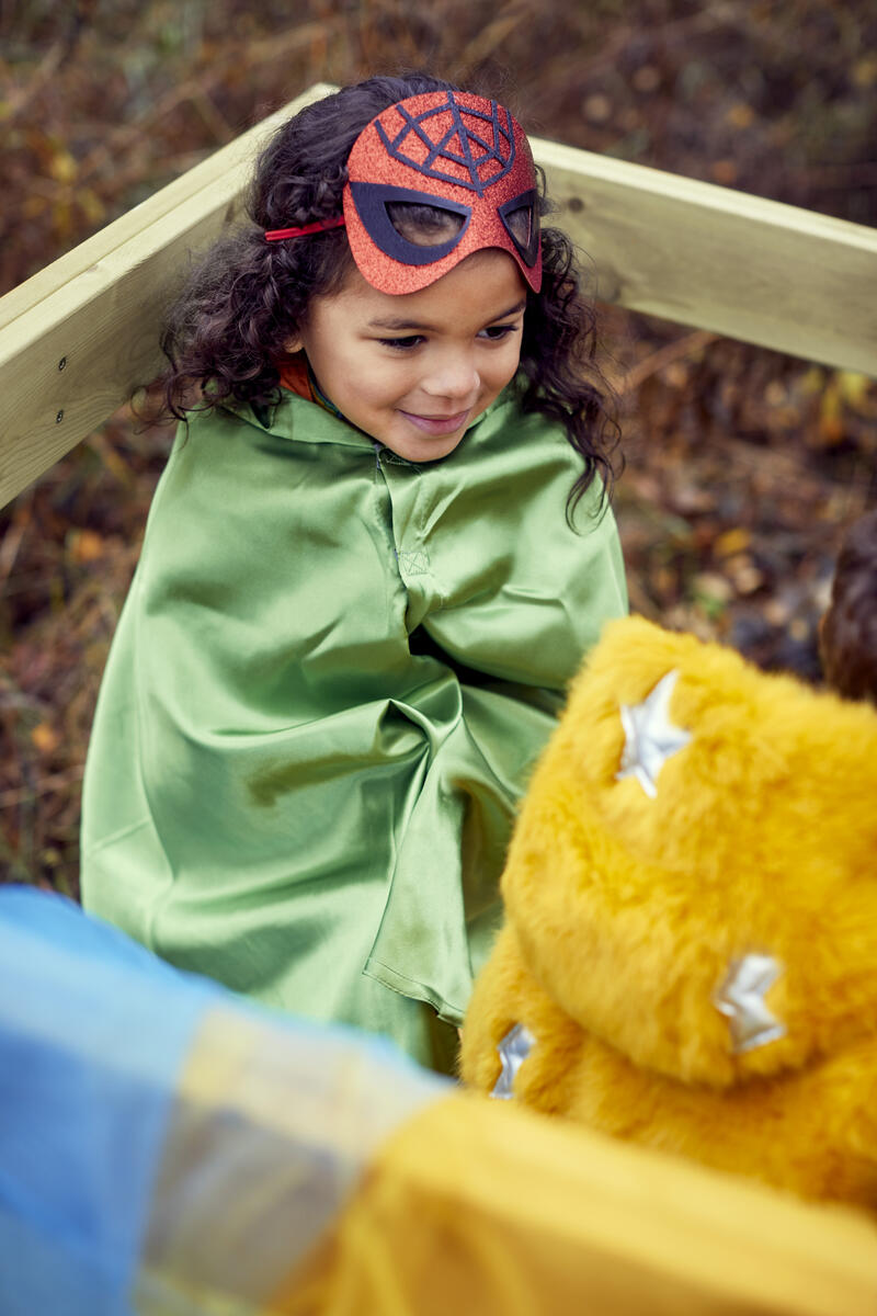 Satiiniviitat sopivat mainiosti dramatisoimaan satuja. Lapset pystyvät nopeasti ja helposti vaihtamaan viittoja ja rooleja. Pakkaus sisältää värit: punainen, sininen, vihreä, roosa ja musta. Viitta voi esittää punahilkkaa, noitaa, sutta, sammakkoa, prinssiä ja prinsessaa. Edessä on tarranauhakiinnitys. Viitan pituus on 70 cm, sopii 3 - 5 -vuotiaille. Hienopesu 30°. Yli 3-vuotiaille.