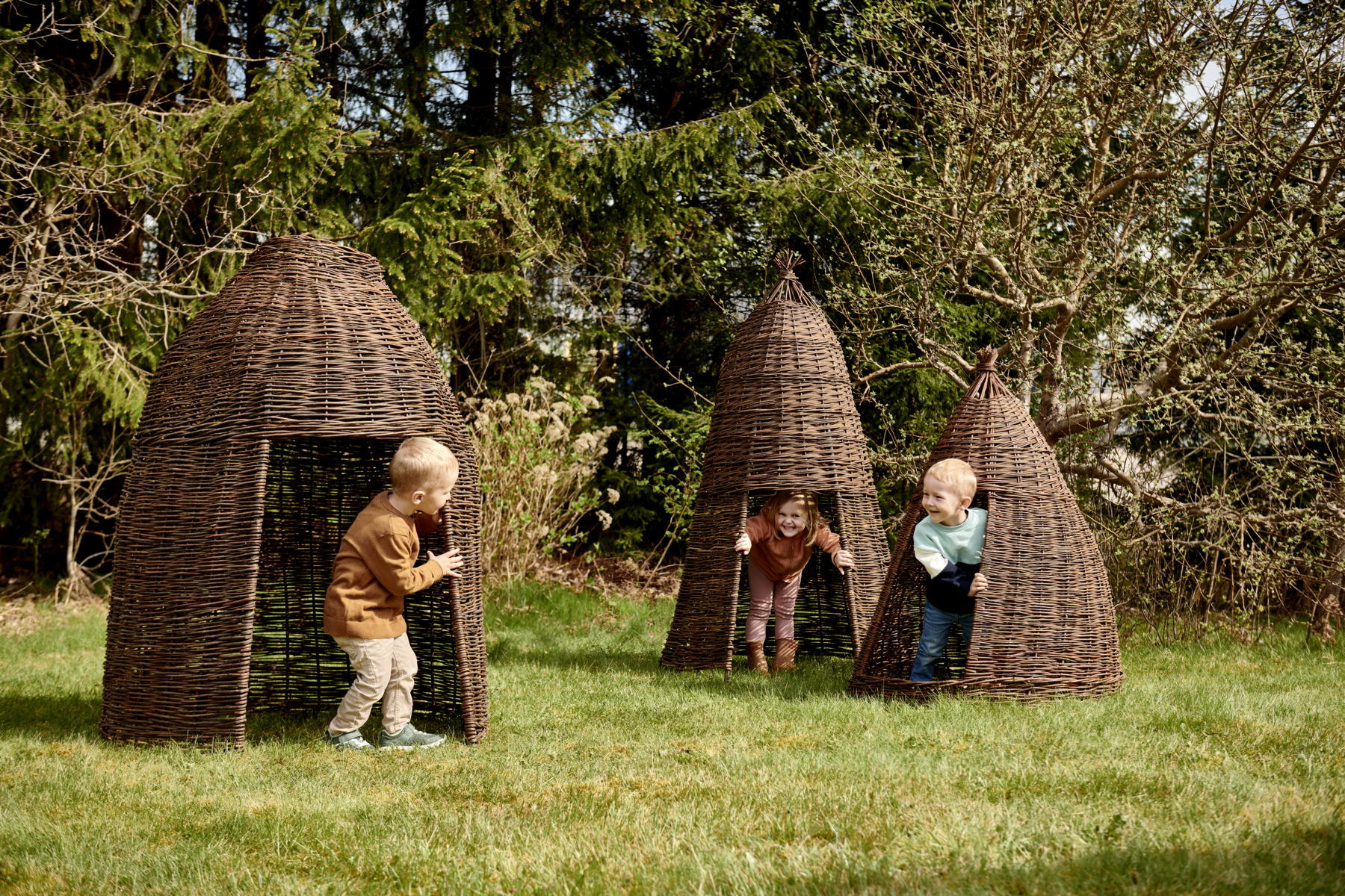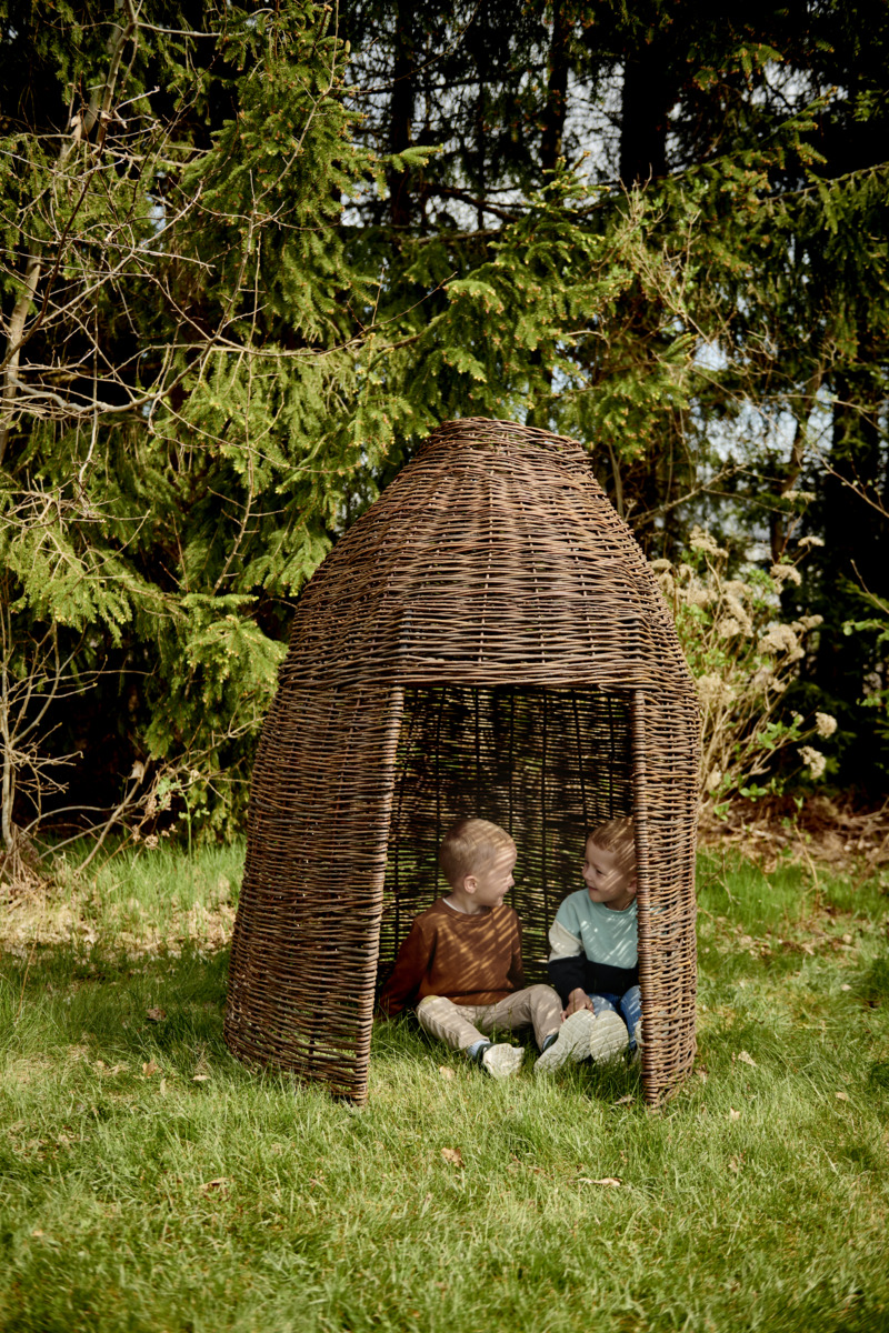 Tyylikäs punotusta pajusta valmistettu aitaelementti, jolla on helppo luoda selkeitä alueita ulkotilaan. Eri vyöhykkeiden muodostaminen tukee lasten arkea, kun toiminta-alueet ja odotukset ovat helposti hahmotettavissa.