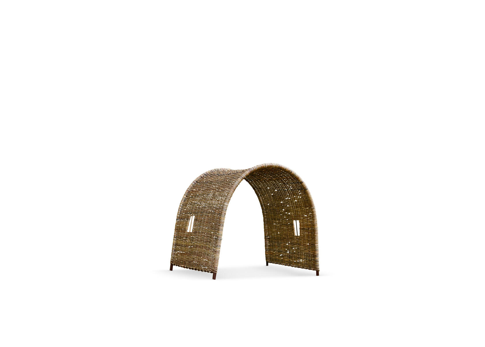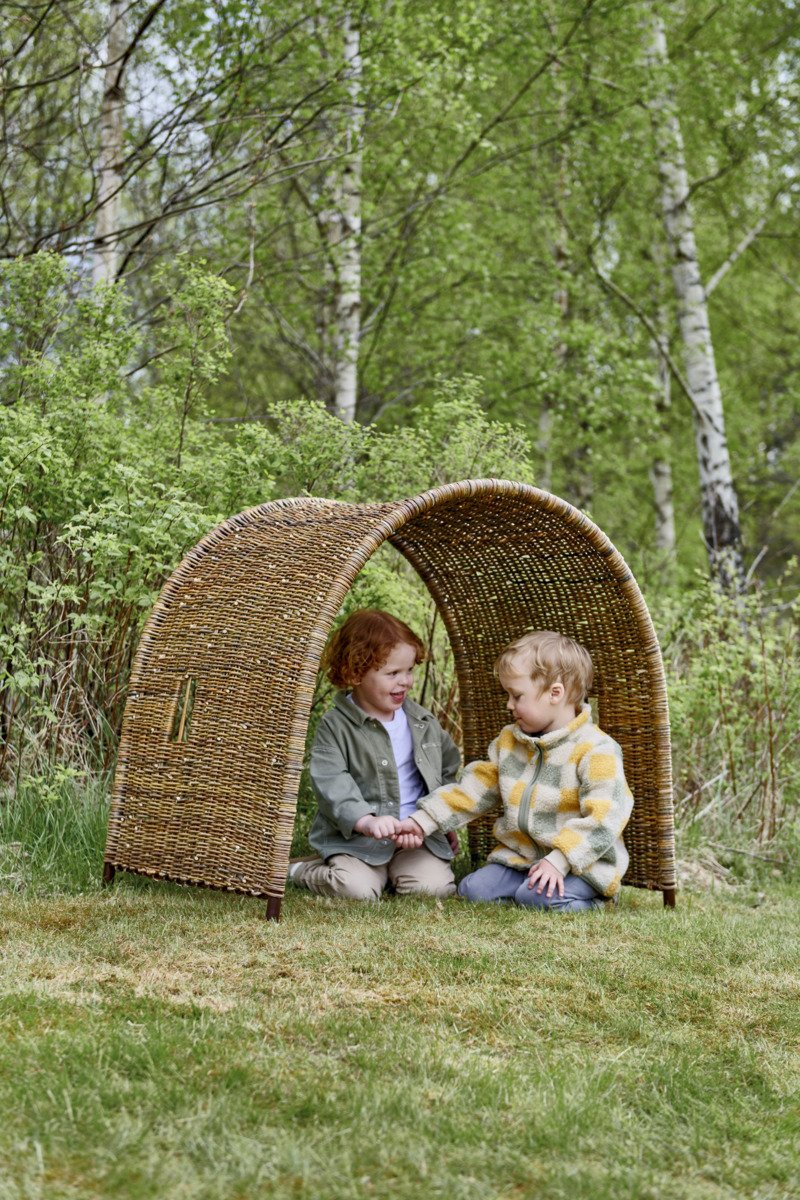 Viihtyisä piilopaikka ulkotilaan, joka luo mielikuvituksellisen ympäristön kauniisti kaareutuvan rottinkirakenteen alle. Avoin ja ilmava punottu muotoilu tarjoaa lapsille rauhallisen paikan vetäytyä hetkeksi, mutta säilyttää samalla hyvän näkyvyyden pihalle. Piilopaikka kutsuu roolileikkiin, keskusteluun ja toimii mainiosti myös pienenä lukusoppina. Luonnollinen ilme tekee siitä lämpimän ja kodikkaan elementin ulkoleikkiympäristöön. Asiakas vastaa asennuksesta. Toimitusmaksu 100 €/tilaus.
