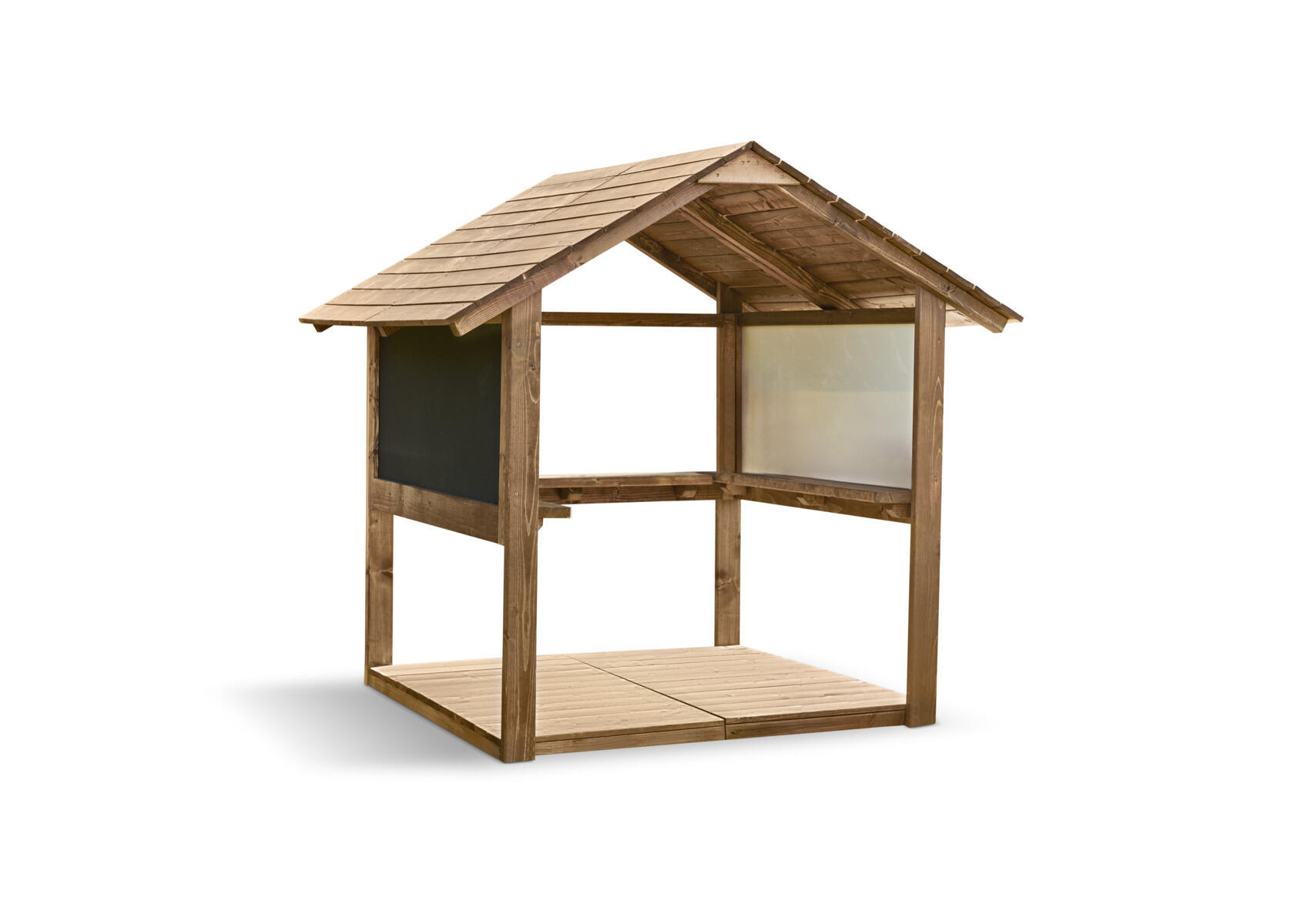 Monikäyttöinen leikkitalo, joka rikastaa pihan toimintaa ja innostaa mielikuvitukselliseen leikkiin. Pieni talo sopii yhtä hyvin kaupaksi, torikojuksi, kodiksi kuin rauhalliseksi leikkipaikaksi. Etuosassa on suuri ikkuna, joka toimii tiskinä, sekä kaksi liitutaulua leikkiin ja viestintään. Avoin ja selkeä rakenne tukee monenlaisia rooli‑ ja yhteisleikkejä. Valmistettu kestävästä FSC-sertifioidusta männystä ja pintakäsitelty vesiohenteisella lakalla ulkokäyttöön. Ankkurointiratkaisu myydään erikseen: seinäkiinnitykseen tarvitaan 2 kpl, tuotenumero 151133, tai maakiinnitykseen 4 kpl, tuotenumero 161297. Toimitetaan osina. Asiakas vastaa asennuksesta. Toimitusmaksu 100 €/tilaus.