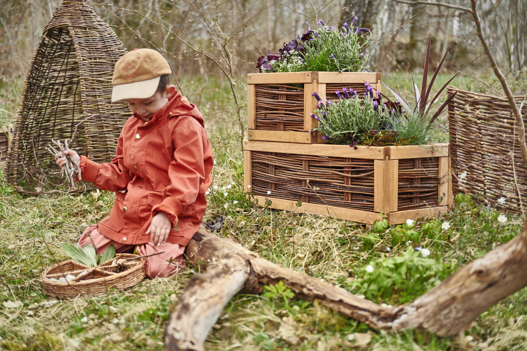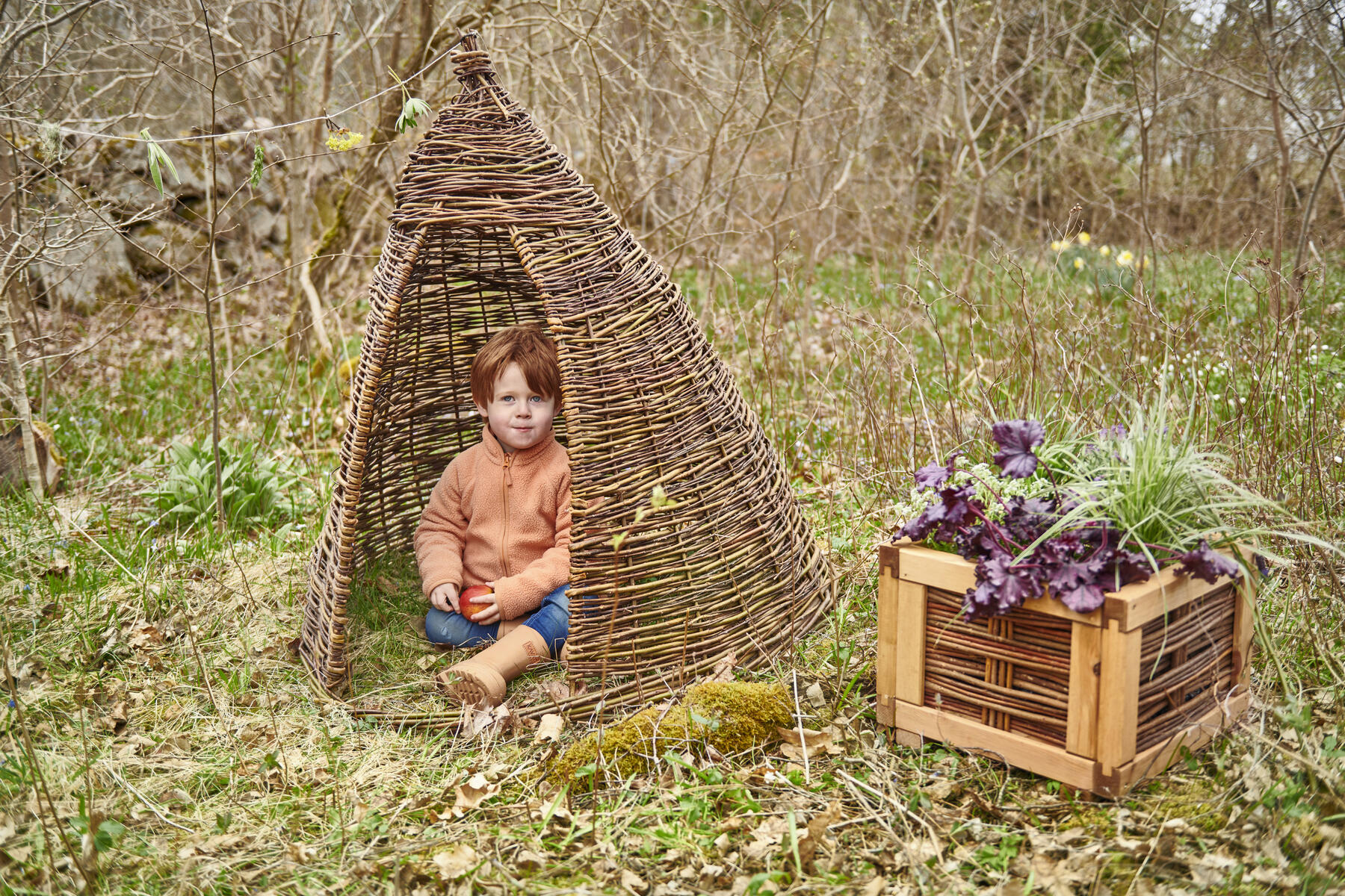 Tyylikäs punotusta pajusta valmistettu aitaelementti, jolla on helppo luoda selkeitä alueita ulkotilaan. Eri vyöhykkeiden muodostaminen tukee lasten arkea, kun toiminta-alueet ja odotukset ovat helposti hahmotettavissa.