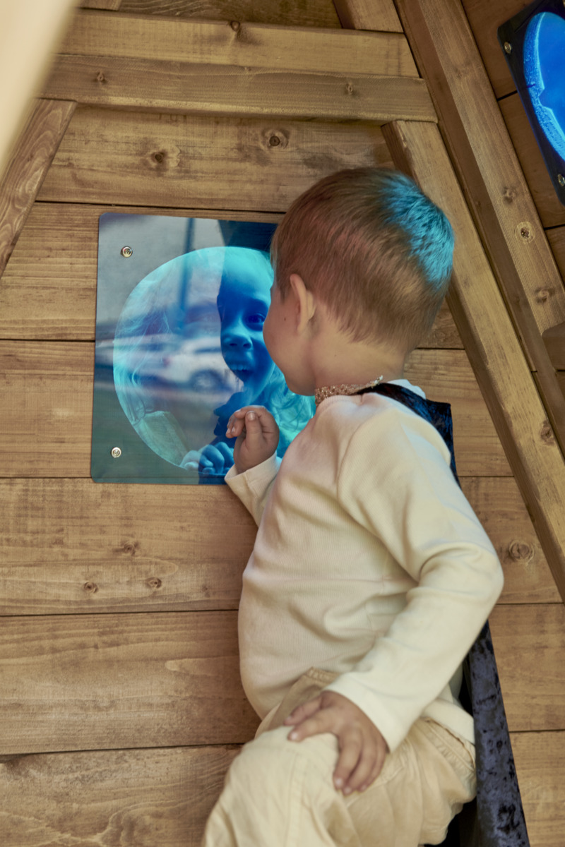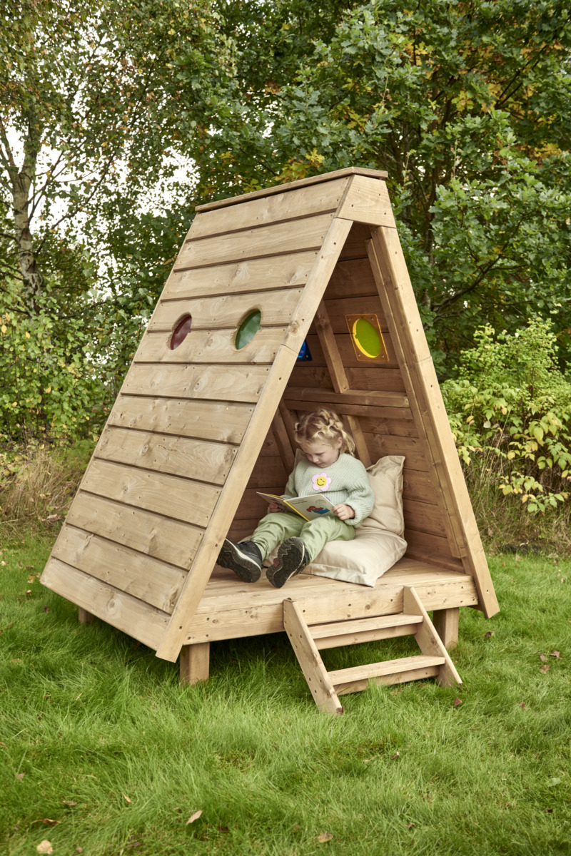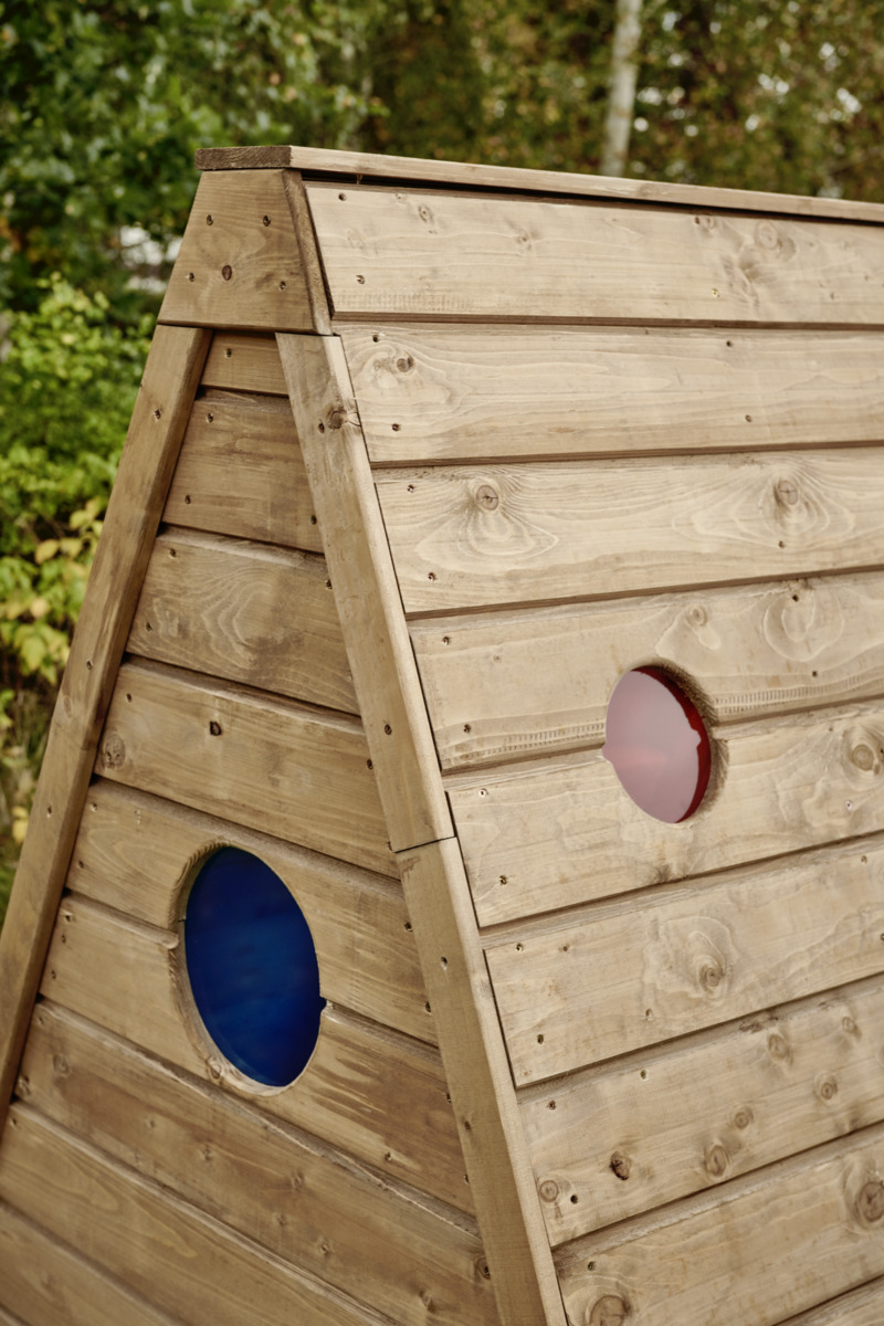 Tämän suojaisan majan avoin muoto mahdollistaa monipuolisen käytön roolileikkeihin, esiintymiseen, yhteiseksi kokoontumispaikaksi tai viihtyisäksi nurkkaukseksi. Värillisen akryylilasin läpi taittuva valo luo elämyksellisiä aistikokemuksia ja stimuloi näköaistia. Maja toimii myös puoliläpinäkyvänä vetäytymispaikkana, josta on silti hyvä näkyvyys pihalle. Tukevat 12 mm paksut akryyli-ikkunat suojaavat tehokkaasti viileältä tuulelta. Kestävä puurakenne sopii hyvin päivittäiseen käyttöön. Toimitetaan valmiiksi koottuna, ja mukana on ratkaisu maahan upotettavaan kiinnitykseen. Öljytty malli säilyttää puun luonnollisen ilmeen – värien ja sävyjen vaihtelu on puulle ominaista. Tarvittaessa suosittelemme huoltoon vesiohenteista puuöljyä. Asiakas vastaa asennuksesta. Toimitusmaksu 100 €/tilaus.
