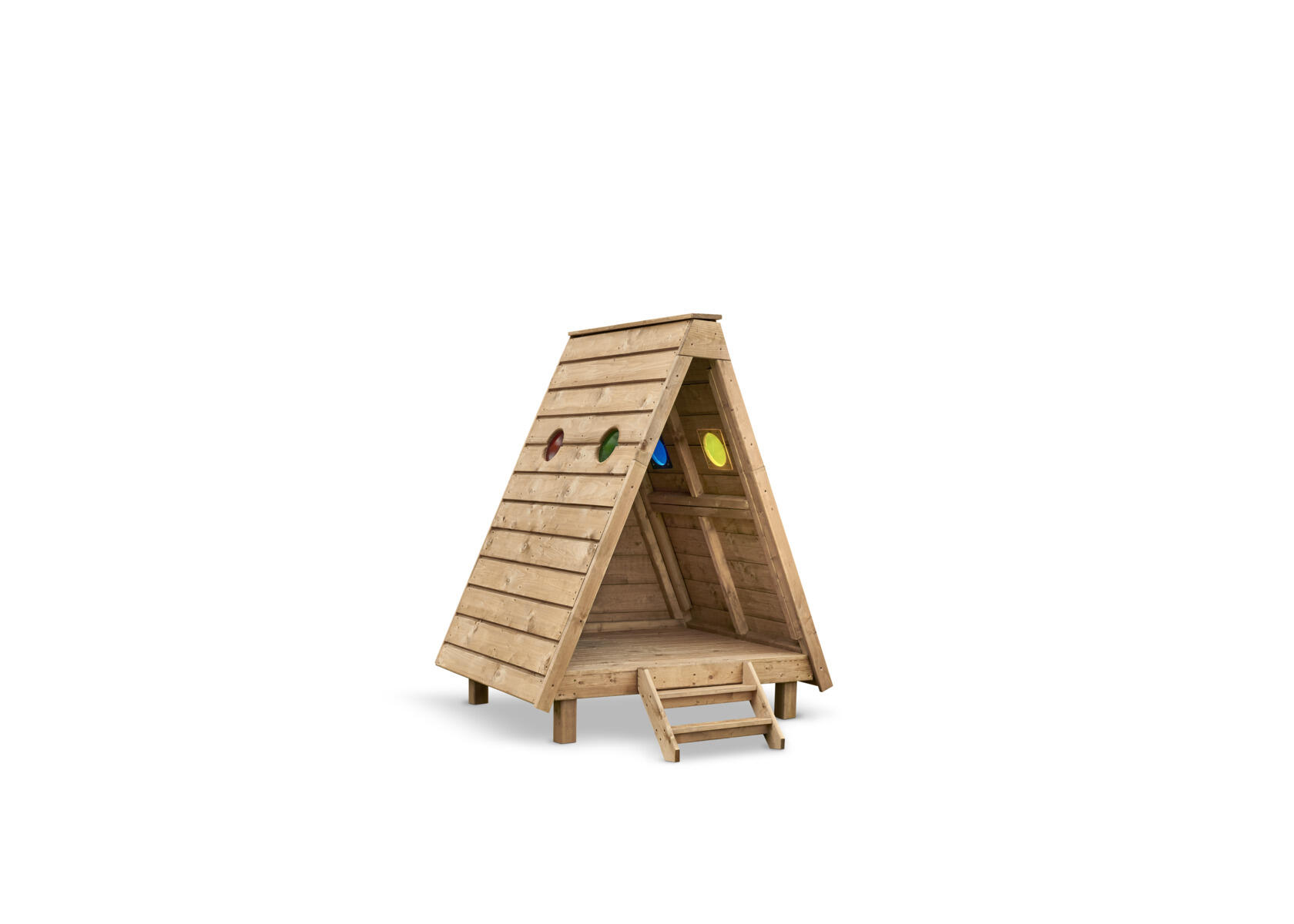 Viihtyisä ulkomaja, joka tarjoaa lapsille turvallisen paikan leikkiin, rauhoittumiseen ja ympäristön tarkkailuun. Läpinäkyvät, värilliset ikkunat päästävät valon kauniisti sisään ja luovat visuaalisia, aisteja stimuloivia elämyksiä. Avoin sivu helpottaa valvontaa ja antaa hyvän näkyvyyden pihalle. Maja sopii monipuoliseen leikkiin ja toimii myös mukavana vetäytymispaikkana. Valmistettu kestävästä ja säänkestävästä FSC-sertifioidusta männystä, joka soveltuu erinomaisesti päivittäiseen ulkokäyttöön. Mitat: 112 x 134 x 156 cm. Maja tulee ankkuroida: vaatii 2 kpl ankkurointisarjaa, tuotenumero 151134 (myydään erikseen). Asiakas vastaa asennuksesta. Toimitusmaksu 100 €/tilaus.